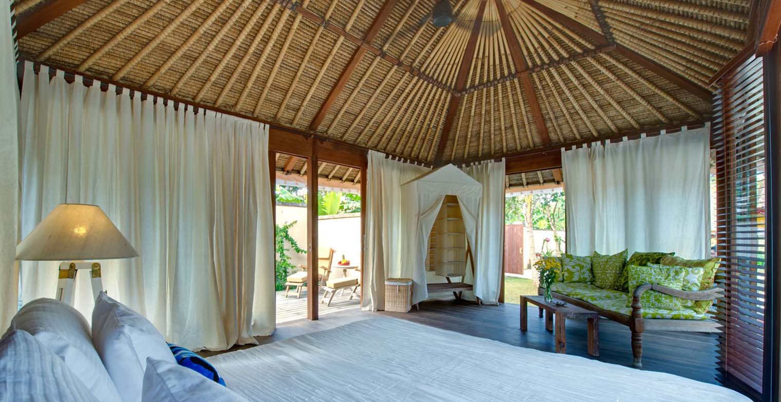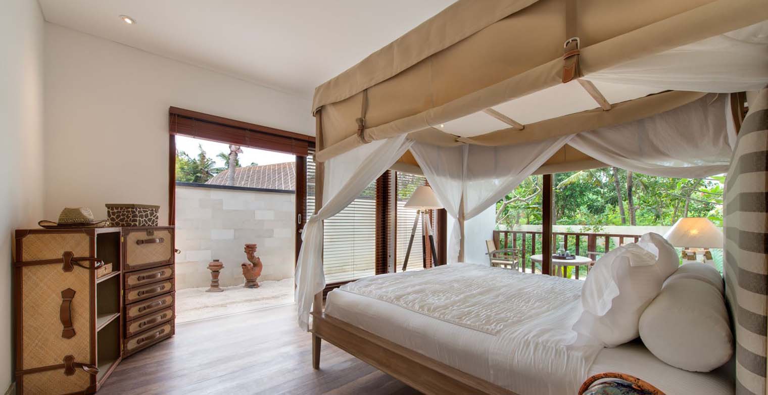 Beyond the villa walls, Voyage keeps true to its luxury adventure theme. On an island that has few cars, the villa has its own safari-style open-sided buggy for land transfers, and also available to villa guests for island expeditions is the Voyage jukung, a traditional outrigger fishing boat that has been transformed into a designer pleasure craft complete with Emilio Pucci print cushions and gourmet picnic baskets. Of course, as in the days of grand travel where one was accompanied by a retinue of helpers, guests can expect to be cosseted by the villa’s charming staff.