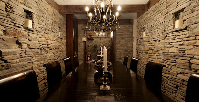 An elegantly lit underground wine cellar with private dining room for 10/12
